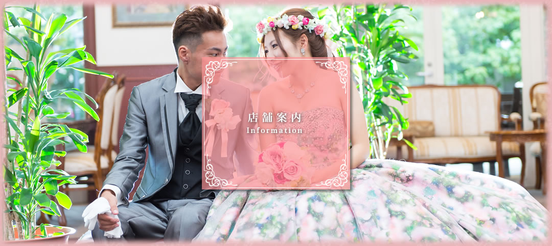 ■レンタル衣裳 花嫁・新郎衣裳、留袖・モーニング・訪問着、成人式衣裳 等 ■結婚式場無料案内 ■婚約指輪・結婚指輪取扱い、ジュエリーリフォーム ■オーダースーツ | ||