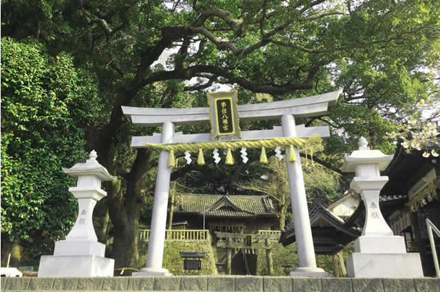 現在の拝殿は宝暦13年(1763年)、 本殿は文化11年(1814年)の建築で、青銅の大鳥居が有名です。